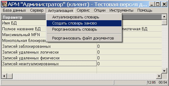 НАЧАЛО >> Оглавление >> Клиентский АРМ Администратор ИРБИС 64 >> Основные режимы работы Клиентского Администратора >> Режимы АКТУАЛИЗАЦИЯ