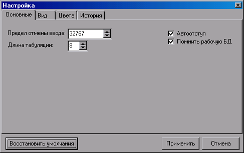 На закладке ИСТОРИЯ можно установить размеры списков, в которых запоминаются (для повторных действий и последующих сеансов работы) открывавшиеся файлы различных типов.