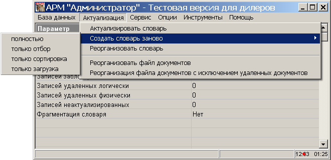 НАЧАЛО >> Оглавление >> Серверный АРМ Администратор ИРБИС 64 >> Основные режимы работы >> Режимы АКТУАЛИЗАЦИЯ