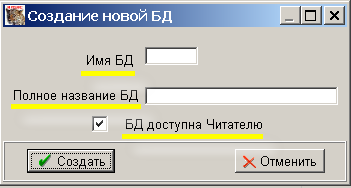 НАЧАЛО >> Оглавление >> Серверный АРМ Администратор ИРБИС 64 >> Основные режимы работы >> Режимы БАЗА ДАННЫХ >> Режим НОВАЯ