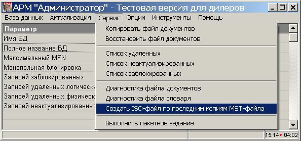 - СОЗДАТЬ ISO-ФАЙЛ ПО ПОСЛЕДНИМ КОПИЯМ MST-ФАЙЛА - для восстановлении «разрушенных» БД