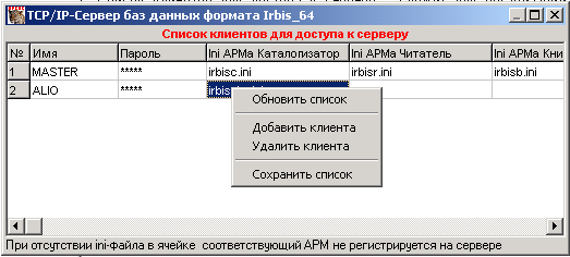 НАЧАЛО >> Оглавление >> TCP/IP сервер протокола ИРБИС 64 >> TCP/IP сервер ИРБИС 64+ >> Пользовательский интерфейс сервера ИРБИС64